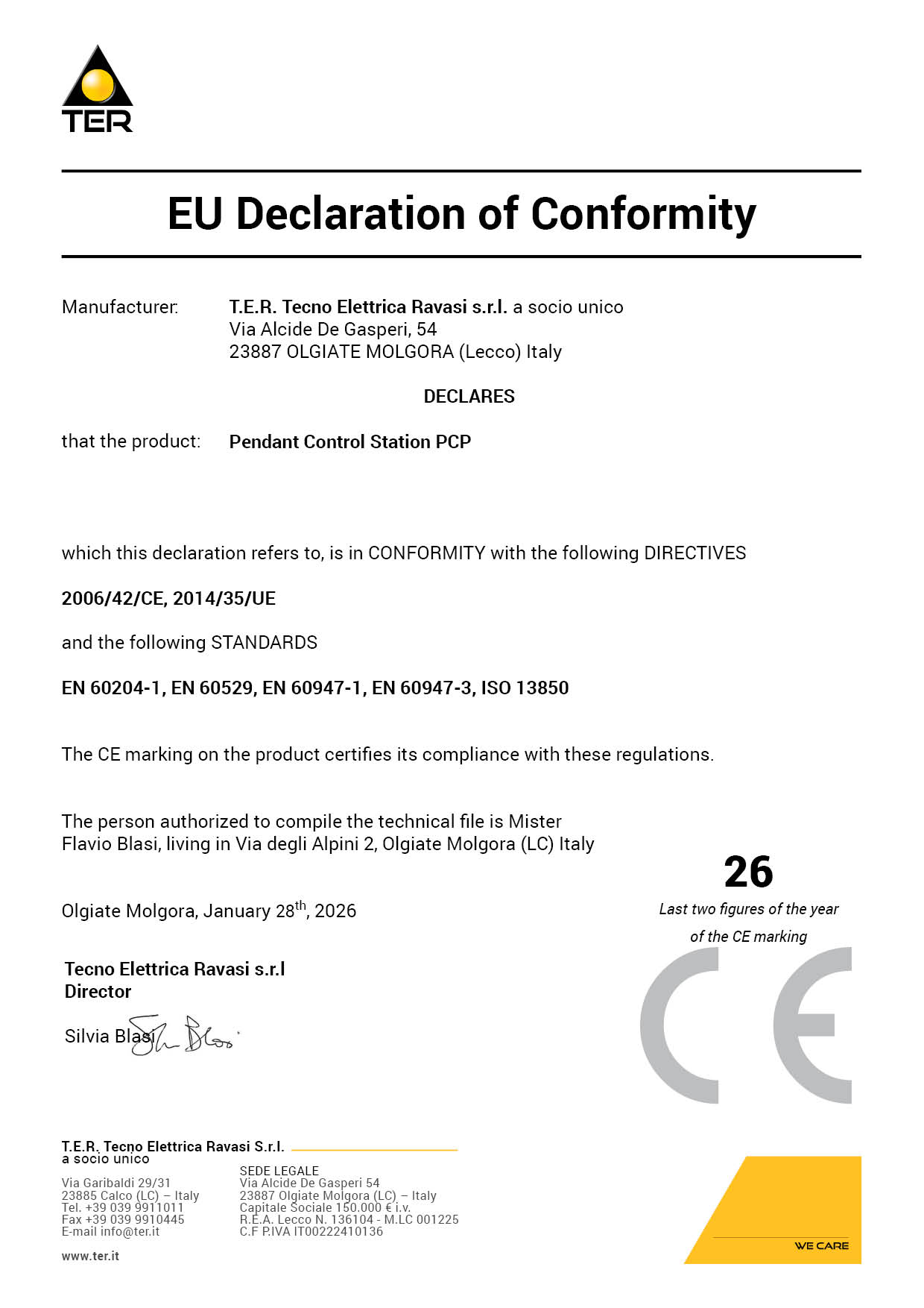 Auxiliary pendant control station, ergonomic and handy, small overall dimensions, two 1 or 2 speed switches.